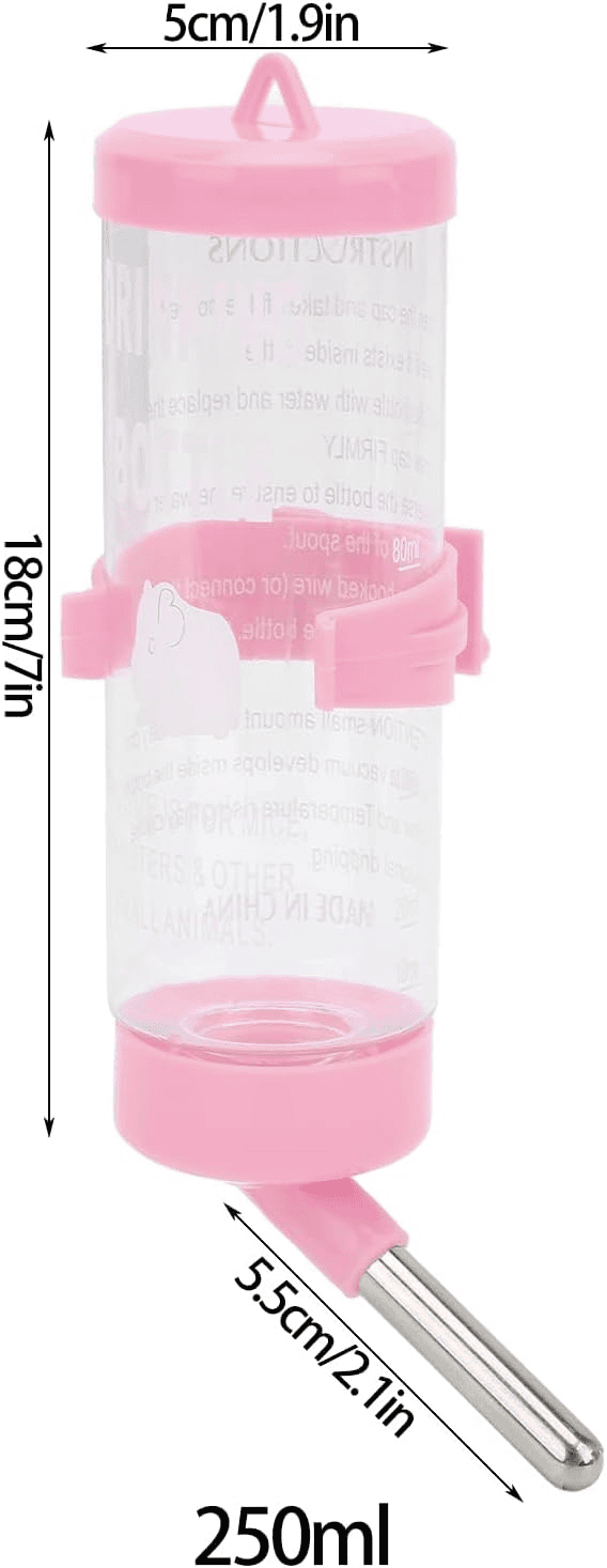 בקבוק מים אוטומטי 250 מ"ל ללא פטוף – אידיאלי לבעלי חיים קטנים כמו עכברים, שרקנים, ארנבות וחולדות. קל לשימוש, היגייני ושקט במיוחד.