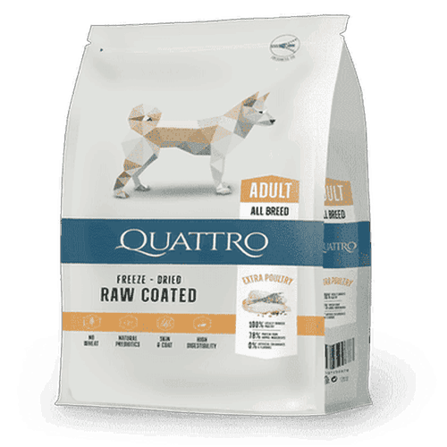 QUATTRO הוא מותג מזון סופר-פרימיום לכלבים, המיוצר בליטא, עם למעלה מ-30 שנות ניסיון בפיתוח וייצור תזונת חיות מחמד.